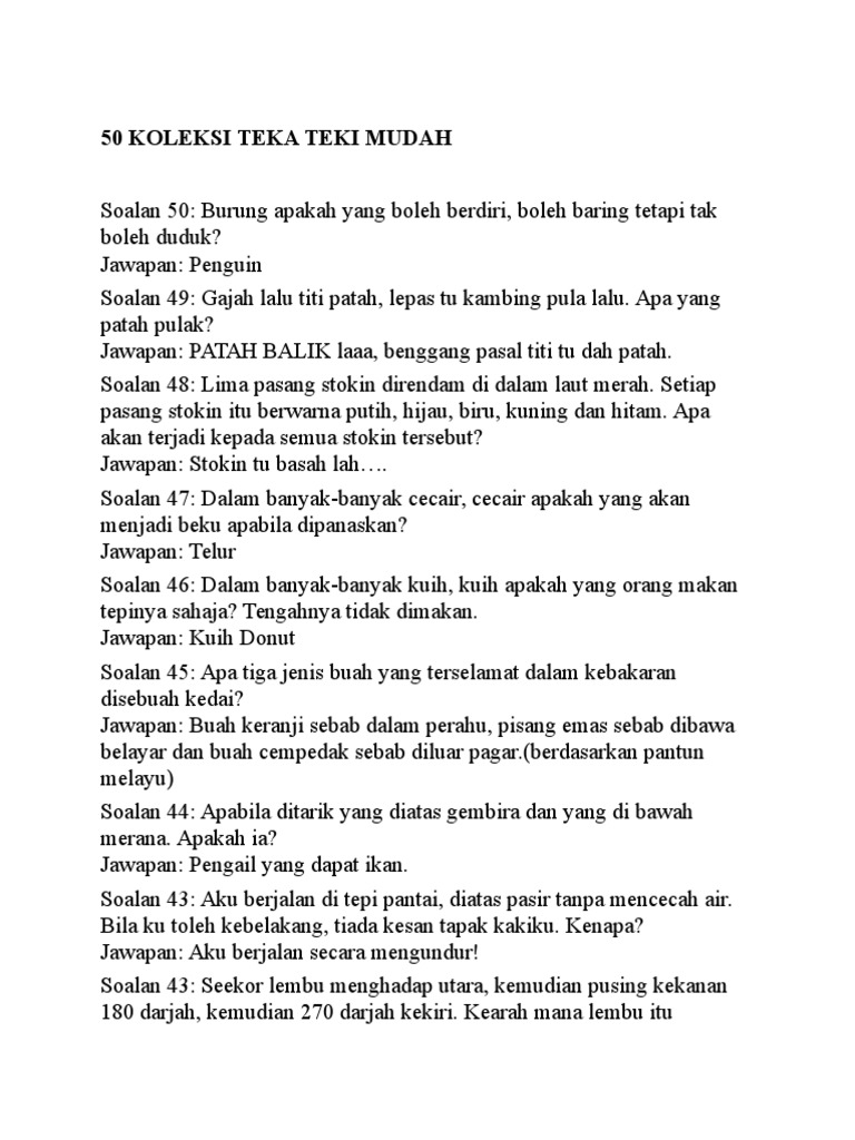 Bermacam Contoh Teka Teki Teka Teko Yang Power Untuk Guru Guru Skoloh
